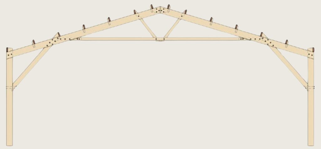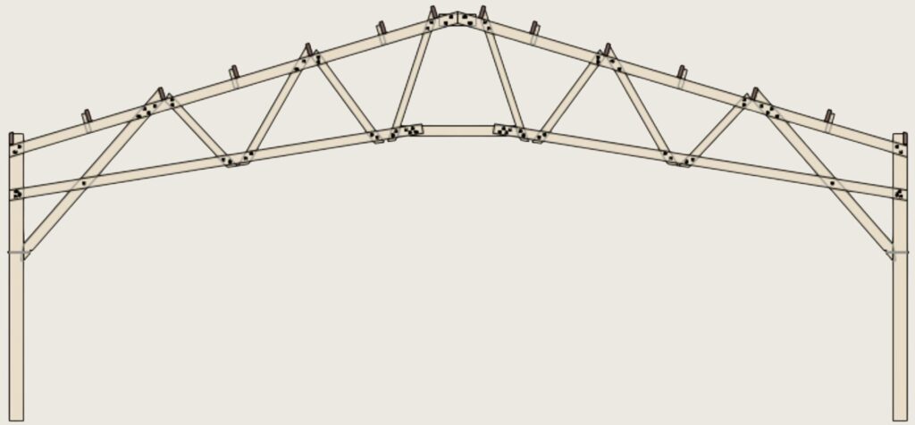 Il existe une grande variété de structures en poutres treillis, dont les formes varient selon l’agencement de leurs composants triangulés. Chaque structure est optimisée pour des portées et charges particulières, en fonction des efforts internes entre membrures et diagonales. Chez Le bâtiment bois, notre système constructif s’appuie sur trois structures clés en poutres treillis bois :